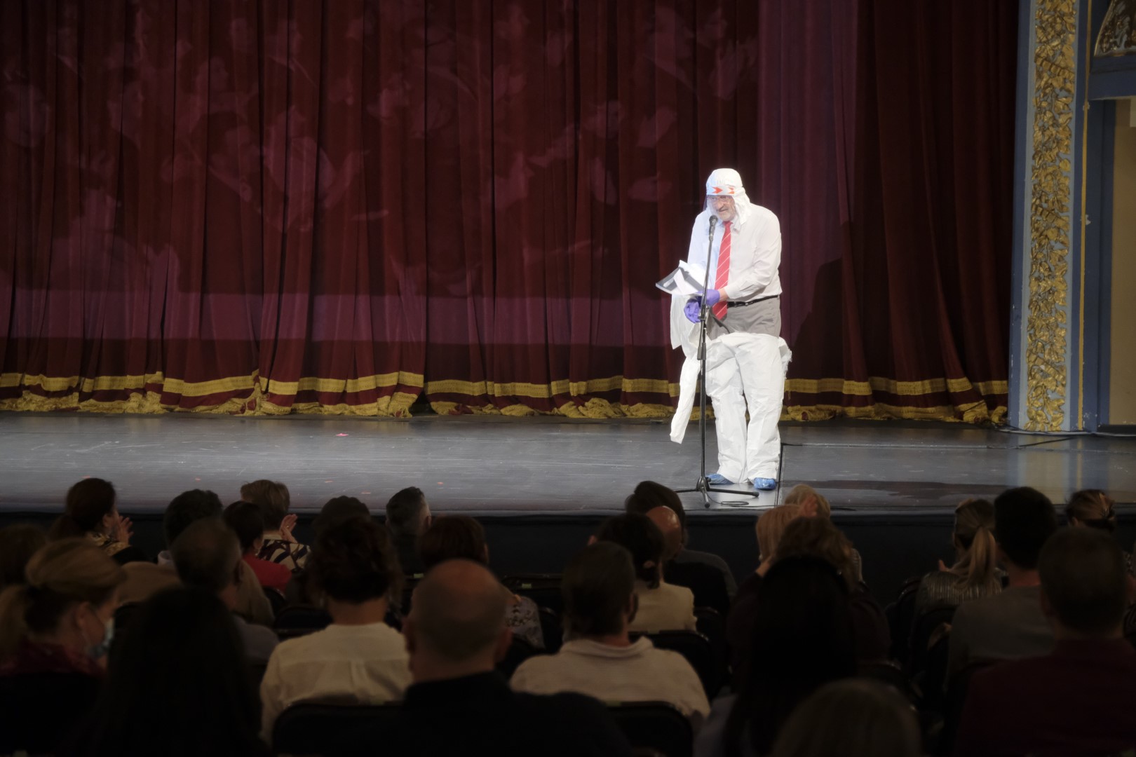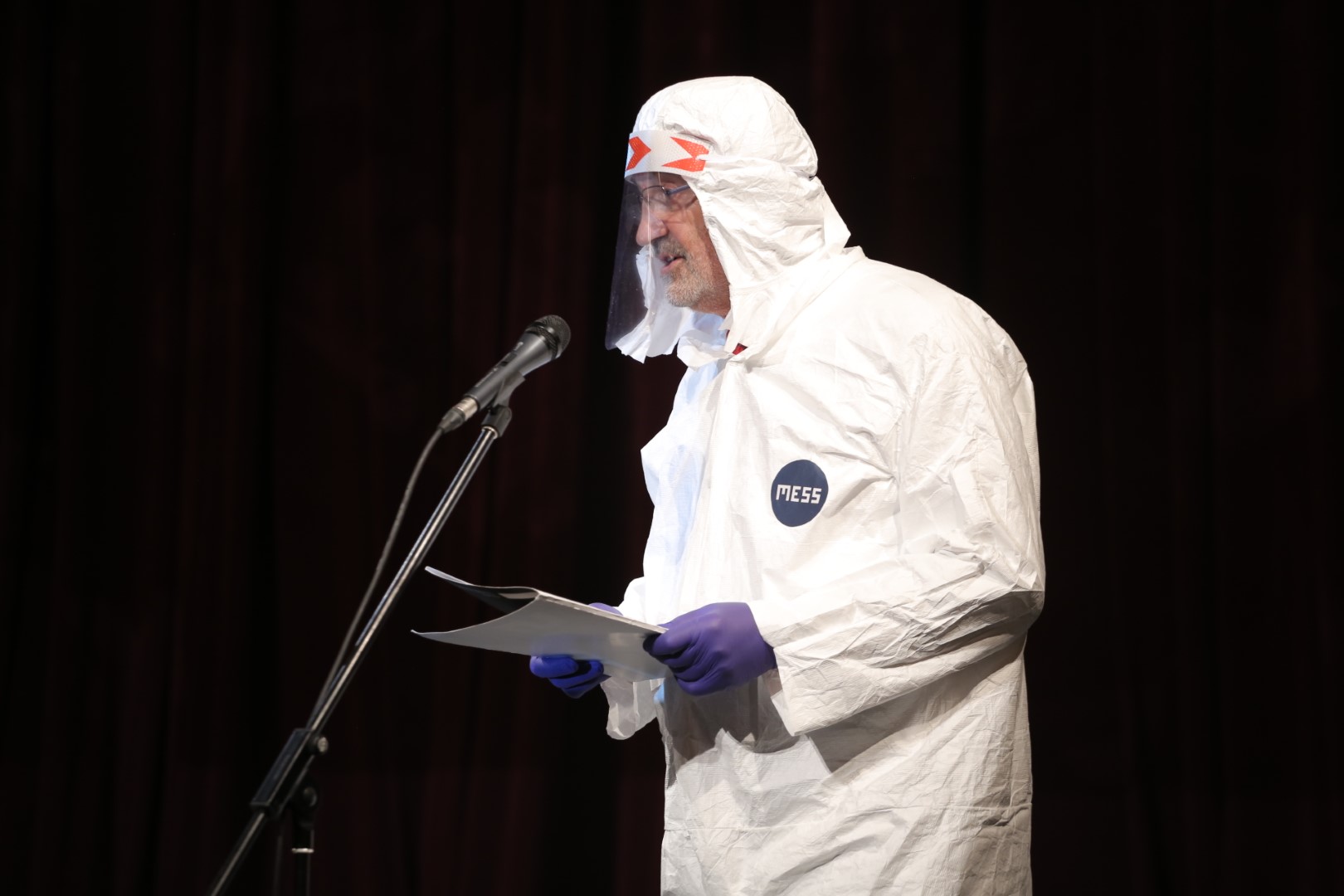 Specijalni gost ovogodišnjeg festivala dr. Bakir Nakaš, veliki prijatelj i poštovalac MESS-a, čak je prije desetak godina dodijelio nagradu publike tadašnjim pobjednicima. Uz Festival je od najtežih dana i jedan je od onih koji znaju koliko je umjetnost važna i ljekovita za jedno društvo. Dr. Nakaš je oduševio publiku pojavivši se u zaštitnom odjelu i poslavši snažnu poruku. „Poruka koju trebamo da prenesemo svima sa festivala je da mislimo na sebe i one oko sebe. Vakcinišite se! A kada se oslobodim ovoga što je večeras na meni, to će biti naznaka da je pandemija u BiH i svijetu prestala“, poručio je Nakaš.